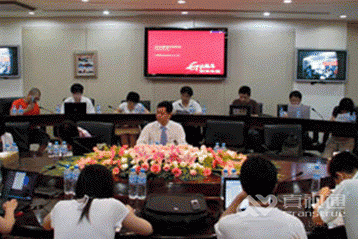 此次新闻发布会地点--鹏润大厦18层视频会议室,由北京真视通科技股份有限公司近期改造,安装3台65英寸液晶电视以代替原投影机,21日工程师进行的安装、系统调试、软件修改,1天内全部完成,在第一响应时间完满地完成了客户的需求。系统改造涉及到视频会议系统、AMX中控系统、视频切换系统、大屏幕显示系统、发言扩声系统等。系统安装调试工作在一天内全部完成,保证了系统功能在原有的基础上升级,调试完毕后,系统工作稳定,运行正常,为22日的新闻发布会做好了充分准备。
