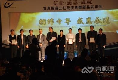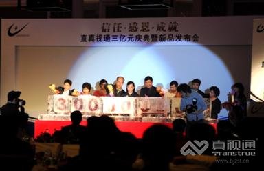 2009年11月26日,“信任•感恩•成就——真视通三亿元庆典暨新品发布会”在京隆重举行。光临现场的嘉宾有十余年来给予真人舞台的尊贵的客户,有和真视通风雨同舟的合作伙伴,有带来政府关怀的来宾,有架起信息沟通平台的媒体朋友,有辛苦了一年的真视通员工,大家齐聚一堂,共同分享着收获的喜悦!