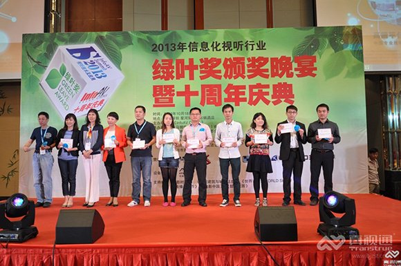 10月18日,“2013年信息化视听行业绿叶奖颁奖高峰论坛暨十周年庆典”在深圳星河丽思卡尔顿酒店盛大举办。本次活动由《InfoAV China》杂志主办,来自相关政府部门、研究机构、视听厂家、系统集成企业、终端用户、协会组织和行业媒体的200多名与会者齐聚深圳,探讨了当下行业发展的技术热点、产业趋势等问题,北京真视通科技股份有限公司(以下简称:真视通)凭借十余年的行业经验和自身的创新能力,斩获“十佳代理/系统集成奖“,同时,真视通的“兰州石化生产监控调度指挥系统”也被评为“十佳创意工程奖”。