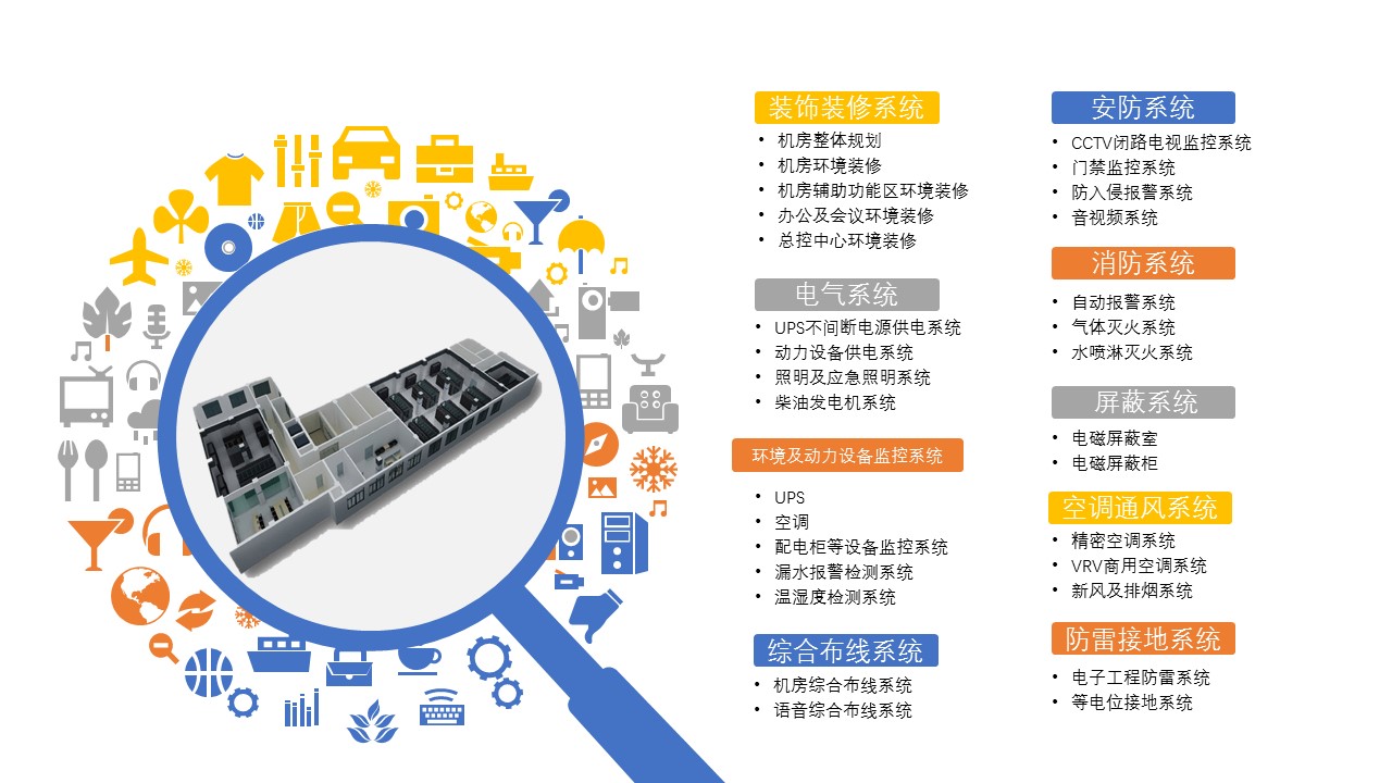 该方案是以项目的全寿命周期为考虑对象,智能微模块采用新型模块化配电和组合式模块化制冷系统,同时整合了物联网智能管理平台、智能机柜系统、模块化智能配电系统、模块化智能温控系统、微信运维平台和云视频远程运维服务平台为一体,是一个围绕机柜微环境的实施及运维的综合解决方案。