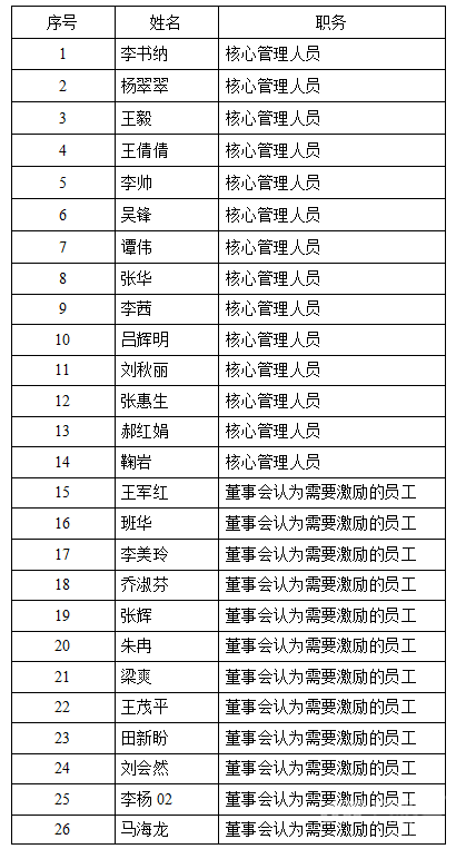 为进一步完善公司的法人治理结构,促进公司建立、健全激励约束机制,充分调动公司中高层管理人员及员工的积极性,有效地将股东利益、公司利益和个人利益结合在一起,使各方共同关注公司的长远发展,公司推出2018年股票期权激励计划;并于2018年5月28日在深圳证券交易所公布了相关信息。根据《上市公司股权激励管理办法》规定,现公示激励对象如下: