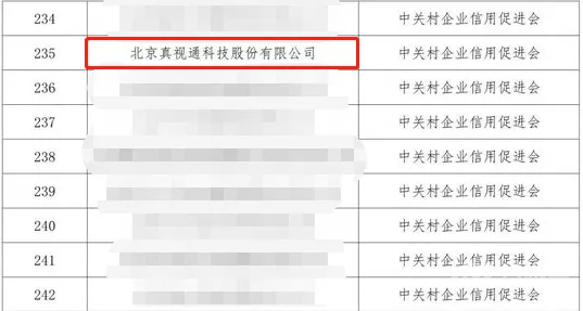 真视通入围"2021年度北京市企业创新信用领跑行动”名单