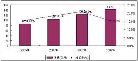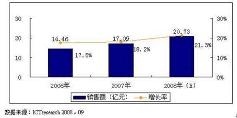 图1 2006-2008年中国机房产品市场规模与增长状况