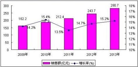 表11 中国机房空调市场2009-2013年市场销售额增长率预测