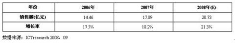 表1 2006-2008年中国机房产品市场规模与增长状况