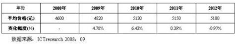表9 2008-2012年中国机柜市场产品平均销售价格预测